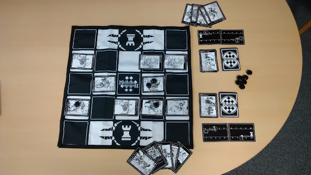 I would wish for a few things. While the monochrome is striking and glorious and will have people stopping and asking what you are playing. I’m not a fan of the art, compared to the rest of the graphic design, as it’s not as strong and striking as I think it could have been. I want characters to be in my face, and I feel you end up concentrating on the numbers and when the cards are out, it’s difficult to tell who is who on the field at a simple glance, apart from their orientation.