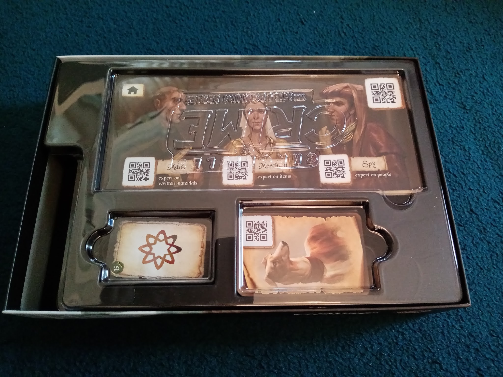 It’s an exaggeration to say that digital content and apps are controversial in boardgames, but it is fair to say that they’re crowd splitters. Between fears of not being able to play a game when digital support is removed and having to hand over part of your device to a company, however trusted, there is some degree of resistance from even those willing to accept the concept. Added to that the fact that many app integrations boil down to glorified timers and a lot of gamers only play games to get devices off the table, games with integrated apps will have some people giving a game the side eye. The Chronicles of Crime series has arguably been the counter to that position, being one of the premiere app-based tabletop integrations. The latest installment of the series places players in the 1400s as a vision experiencing semi mystical investigator in a fairly non-specific medieval world, so how well does using a piece of 21st century technology to look into a 15th century world work?