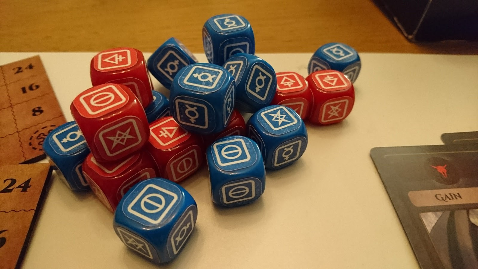 That however is not the reason that I like Dice Summoners. One of the things that struck me was the simplicity and purity of the core mechanics, so that when Simon from Tabletop Scotland asked me what I thought of the game, I wasn’t only able to give him a grin and exclaim once again I had won, but I was able to in a period of less than five minutes explain to them how to play the game. That to me is a GOOD THING.