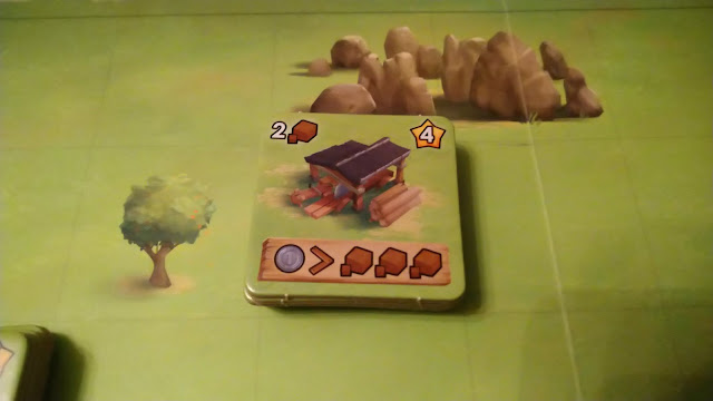 Buildings can be constructed as long as you have the necessary required resources to make them and then can be placed on a board in an empty space. However, for that action, you place a worker in the construction space off the main board and will not be able to gather any resources for that meeple. Once everyone has played their meeples in turn order, you then have to make sure all of your workers are fed by using your gathered wheat and fish.