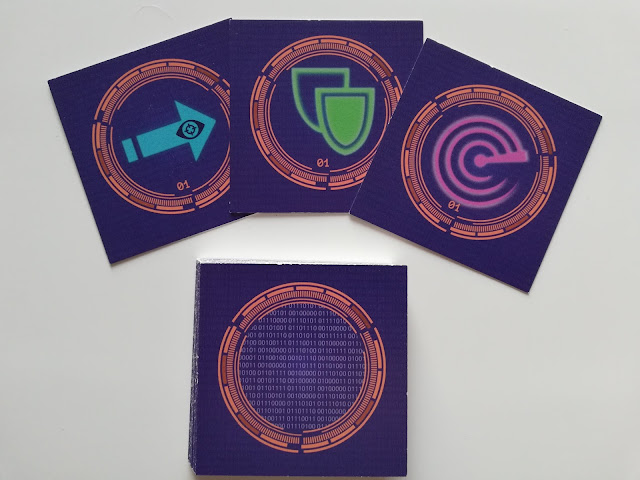 A Role Card is selected that will give you a bonus effect for use in the game, for example a deep scan would reveal two cards instead of the standard game action of one. You also have a shield card with a strength of two. Again, I’m sitting with the game set up about to start thinking “I got this. I have a plan, I have shields ready to charge. It’s all good.”